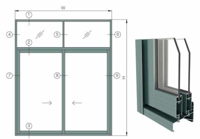 カーテンウォール、窓、ドア、キャビネットなど。 |